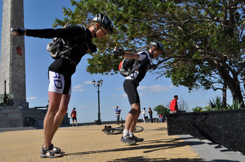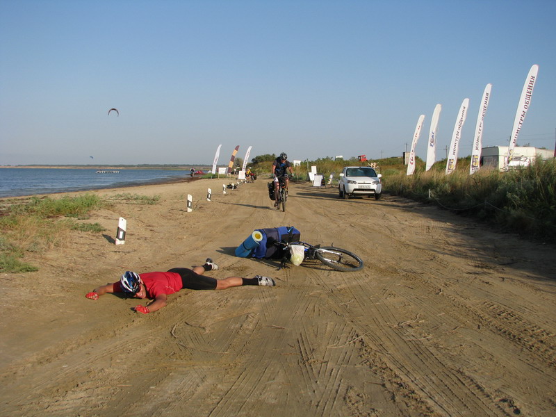 Группа из 12 участников успешно доехала в пятницу в Керчь, погуляля в Керчи и в воскресенье поехала дальше по маршруту. К сожалению из за затянувшейся простуды Иры, мы с женой вернулись из Керчи в понедельник в Воронеж. В целом все хорошо, правда для купаний было прохладно, зато для катания на велосипеде температура самое то и почти все время ветер был в спину. Главный неприятный момент - ужасные колючки какой то южной травы уже знакомые нам по Ростовской области и Турции - надо в след раз думать о герметике.