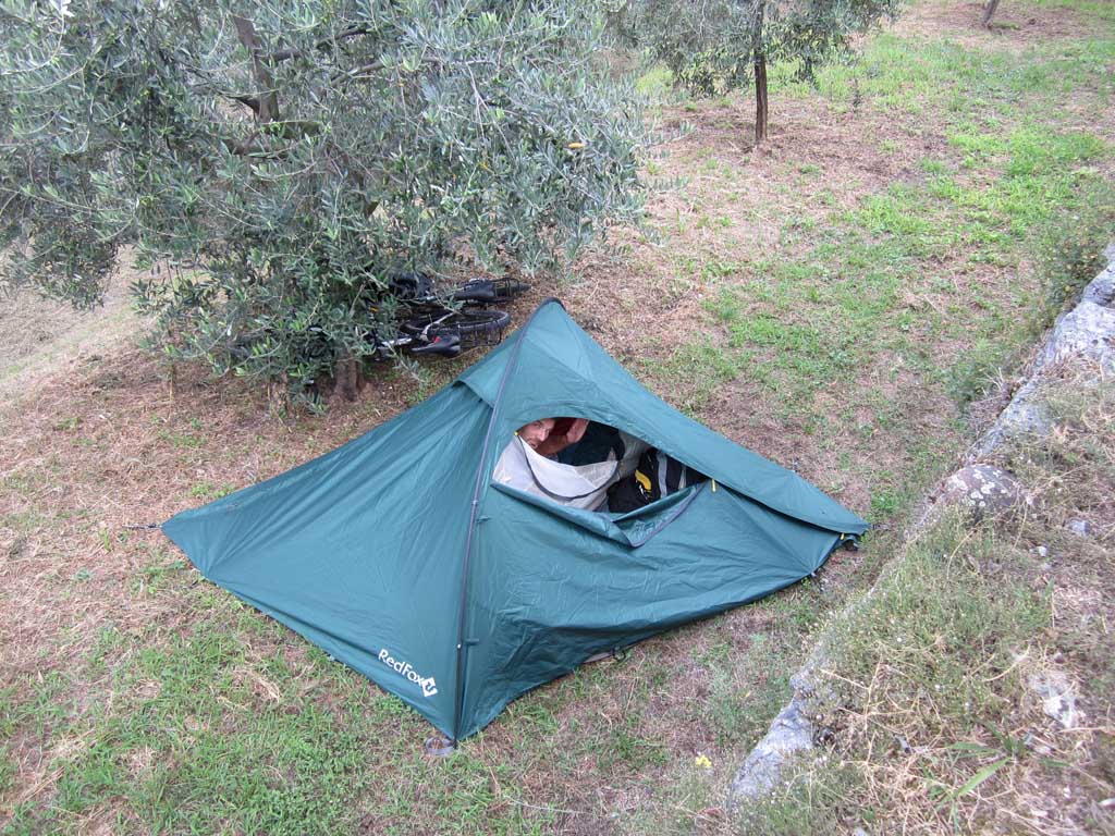 Конечно она однослойная, но кусок клеенки сверху и 2 велочехла снизу спасали от сильного дождя.