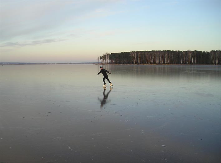 Шел с работы сегодня вечером, народ вовсю на коньках катается на лебедином пруду недалеко от Минской, но я пока на водохранку не рискну. Подожду льда потолще