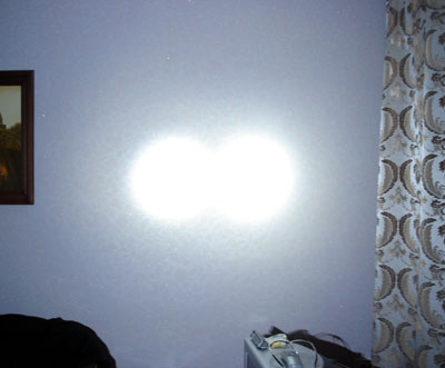 Собственно, описывать тут нечего особо… скажу лишь, что фотка делалась в темноте на 9-шной роллерной трассе с одинаковыми настройками фотоаппарата для каждого снимка (вот только балланс белого был на авто). Сначала хотел сделать фотки в нарастающей последовательности качества света (мой старый фонарик, один С2, два С2), но т.к. был не один, все позабывал и сделал всего несколько снимков с одним и двумя включенными С2. Расстояние до «мишени» 30 шагов. Режим фота – ночная съемка. Снимки корректировал в Шопе, чтобы было максимально (мое ИМХО) схоже с действительностью.