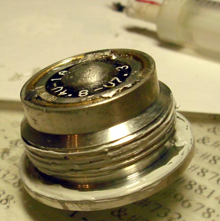 а) задняя крышка фонаря с выключателем. Обычно здесь и есть плохой контакт выводов выключателя к корпусом фонаря. Как избавиться от этого, смотрим в приведенной выше статье и на фотках. б) места припаивания проводов к контактным площадкам светодиода. Такое ощущение, что жадные на олово китайцы еще и изрядно торопились во время пайки. Аккуратно облуживаем их (проверяем наличие термопасты под светодиодом – см. след пункт), контактные площадки светодиода (осторожно, не перегрейте его!) и припаиваем все как следует. в) места контакта центрального блока (светодиод + драйвер) с корпусом фонаря. Здесь нет, но не помешало бы наличие термопасты. Светодиод греется, поэтому хороший теплоотвод будет только во благо. г) места пайки дорожки драйвера к корпусу центрального блока. У меня все висело на одной маленькой, ууузенькой оловянной сопле (сорри за французский). Не забывайте, вам потребуется флюс для пайки алюминия (стоит недорого в магазине радиодеталей у Электроники).