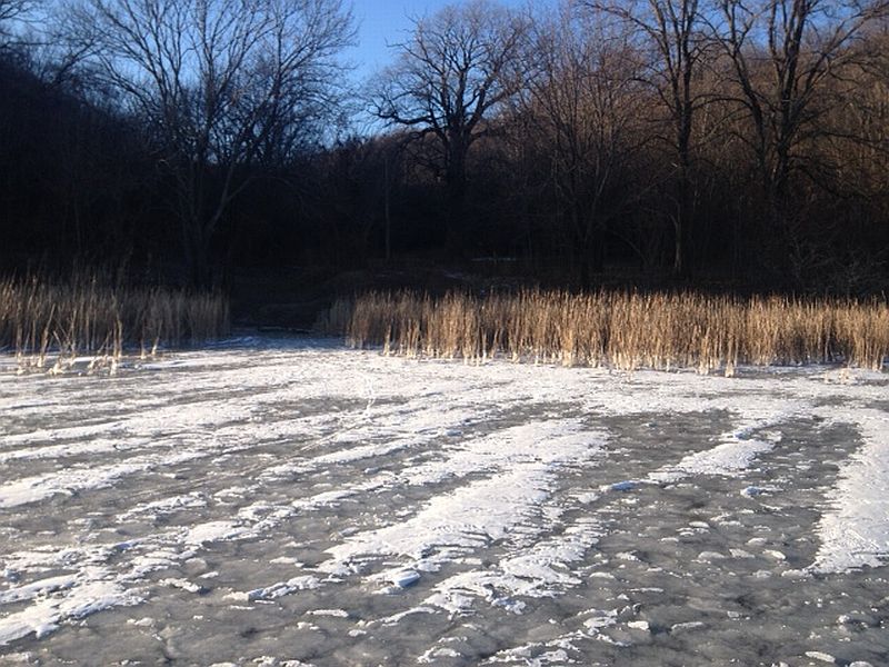 и не страшно вылеать то , рыбаки оно понятно , у них зуд , ну и пешеход давление на лед меньше создает, чем велосипед. у меня прямо напротив дома замерзло идеальное зеркало, прямо для любителей коньков, а ближе к мосту такая же неровная фигня.