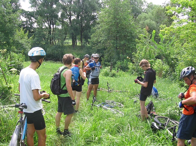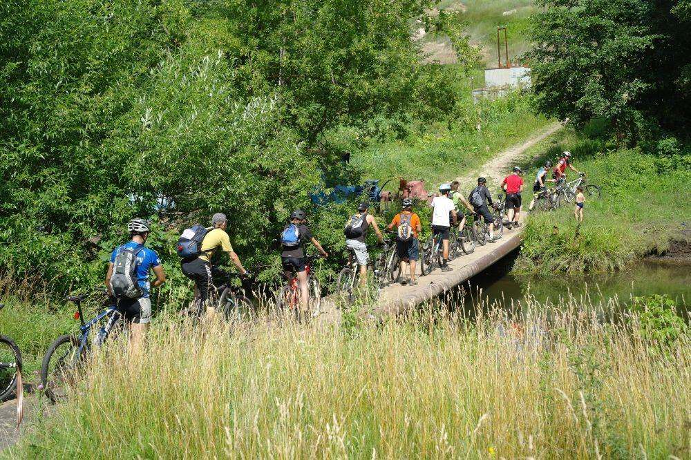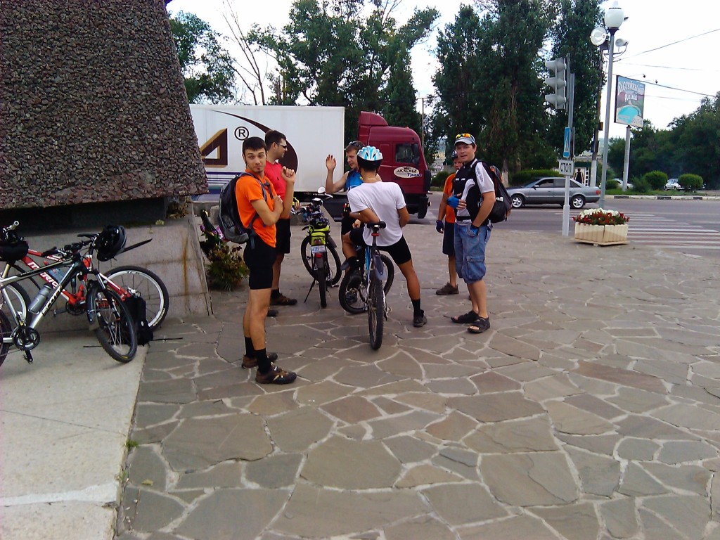 Собралось у танка 14 любителей отдохнуть посредством бицикла. Двинулись. У моста через Дон