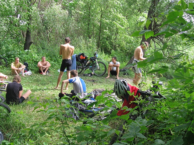 Все таки приятно окунуться голышом. Отдохнули мы именно в этом месте, раз нас Роза люксембург так и не приняла. Дальше проехали мимо зарыбленного пруда, кстати тоже весьма пригодного для купания.