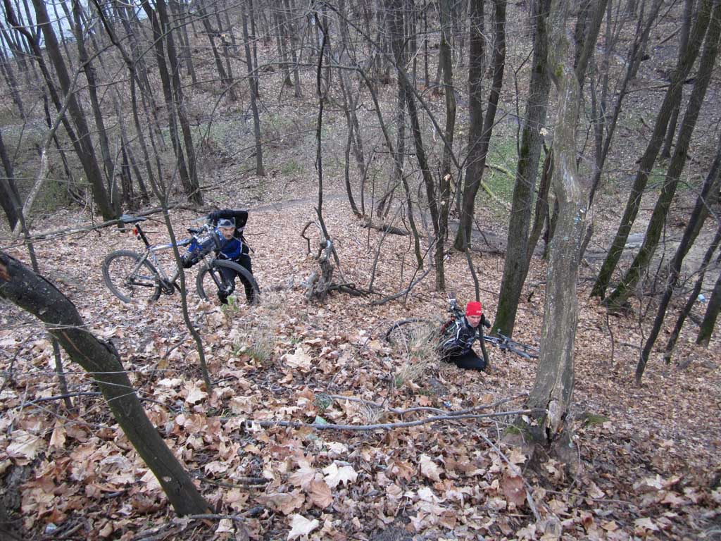 В сумме вышло 60 км, но из-за очень пересеченной местности, частым прогулкам с велосипедом в руках и подъемах в гору сил ушло много.