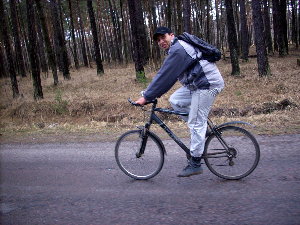 Осталась всего ничего, каких-то пара сотен метров до Олимпика, и тут опля… слева по асфальту обходит велосипедист, и, завидев меня, направляется ко мне. Узнаю в нем Radler`а. Он сообщает, что едет навстречу группе через Рамонь в Бор (опоздал из-за установки контактов). Предлагает ехать с ним. Соглашаюсь, но, понимая, что я испытал 10-го в поездке на Погоново, довожу до его сведения, что проеду с ним чуток и отстану.