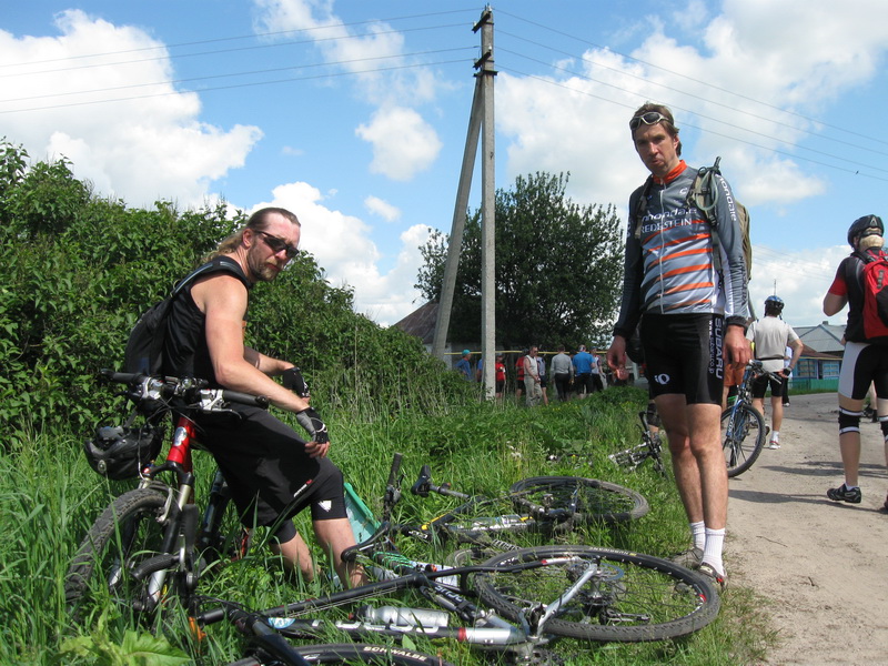 Любители встречного ветра, собравшиеся к часу ночи на могиле генерала Лизюкова, были разочарованы: никакого ветра не обнаружилось. Зато приехали провожающие. В конце концов, во втором часу удалось двинуться на Липецк. Жени, Неджу, Радлеру, Заводчанину(по - моему?) и мне. Заводчанин у второго поста ГАИ решил вернуться. На мой взгляд он был слишком легко одет. Пока я первую половину пути в Липецк ехал впереди, у меня замерзли руки до такой степени, что не удавалось давить на манетку. Перчатки то я не взял. На Рамонском повороте, из тьмы под колеса, растопырив руки, кинулся странно одетый мужик. Одна половина у него была желтая, другая – черная. За доли секунды удалось идентифицировать его как Т_Dev-а и успеть нажать на тормоз. На обочине стояли тяжело груженые Метеор и Монах. Пожелали друг другу встретиться днем на рамонском мосту и двинули по своим программам. К границе липецкой области и чаепитию в кафе с самолетом мне удалось сорвать колено. Так что почти всю оставшуюся часть дороги висел на колесе у Радлера и наслажлался пением соловьев и шорохом шин, а не диким треском его нового фрихаба от Хоуп. Первую половину пути в Липецк его втулка громыхала у меня за спиной, когда он переходил на езду накатом. Когда свернули с М4 на Липецк, дорогу уже было видно без фар. К танку приехали довольно рано и отправились на автовокзал чаевничать. Когда вернулись, народу прибыло, и вскоре состоялся старт. То, что темп второй части будет припадочный- стало ясно довольно быстро. Силушки у народа в загашнике было много. Я и сам был не прочь побиться в дорожных конвульсиях с целью подготовки к предстоящей курской трехсотке, но колено мешало отдаться броуновскому движению целиком. Поездка напоминала движение сперматозоидов в презервативе. Мне очень понравилось. А вот главный тепловоз Жени сначала был очень хмурый и в танцах жизни участия не принимал. Ожил он окончательно, по моему, только на Рамонском мосту, в окружении девушек со всех четырех сторон. Погода была лучшая за три года, народу было рекордное количество, мент в Усмани поорал, но никаких действий не предпринял, автобус проехал грунтами, не завязнув. Все удачно сложилось. Впрочем, липчане с их основательным подходом к организации были обречены на удачу. Очень трогательная медсестра, когда я попросил у нее Феналгон спросила: «а это что, от насморка?». По- моему, Феналгон от геморроя, но я хотел намазать им колено. Выручил Линч у которого оказался тюбик с собой. Воронежцев даже сначала было аж девять человек (не узнал сразу МФ), в Ступино и Рамони подтянулись еще. Муза дальних странствий Галя Рангифер, например, которая нашла в себе силы оторваться от написания диплома. Надеемся встретиться хотя бы с частью липецкой компании 12-го на Ворголе, или 13-го. Было здорово.