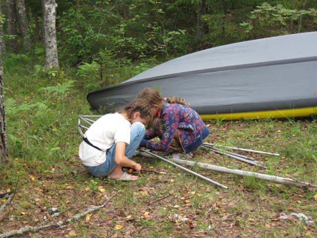 Не пожалели, что взяли две байдарки: простота загрузки (кроме своего мы везли все общественное снаряжение, гитару), фартуки и юбки на случай дождя, и девочки были не просто «мартышками», а полноценными матросами.