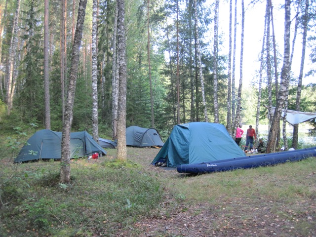 На берегу озера Язно встретились в воскресенье 13 августа, добирались до него на автомобилях каждый своим путем. Мы всю дорогу переживали за «Принца и Нищего» (радиоспектакль) и ночевали вблизи Торопецкого тракта на реке Межа и, проехав село Сыроквашино, близ Невеля, прибыли на место стапеля. Ивановы вели СМС-трансляцию своих походных сборов, пытаясь все уместить в Дастер.Но когда они увидели, на какой машине подъехали Федоровы (кстати, разыскивали они нас по развешанным на елках пакетам Центрторга)…Мы теперь знаем – Рено Твинго, очень вместительный автомобиль, ведь у ребят был даже единственный на всю компанию раскладной стульчик, а это говорит о многом.