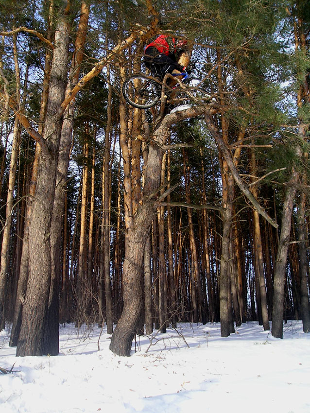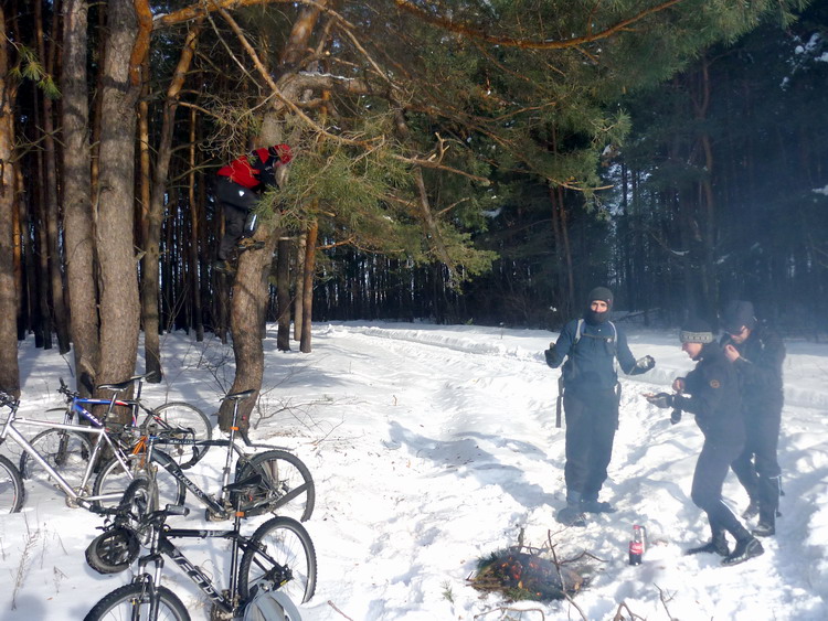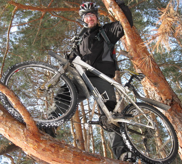 Целились в Чистое озеро, стрельнули и с хорошей инженерной точностью попали в Рыкань. Повторили прошлогодний маршрут см. "Битва при Рыкани", но в снегах не тонули, потому что велосипедист - это сложное, обучаемое крутильное устройство. Оно обучилось, чтобы в снегу не тонуть, да и не тонуло. Правда, даже у продвинутых моделей думатель дает сбои. Поэтому иногда можно увидеть велосипедиста, допустим, на дереве. Можно даже увидеть на дереве двух велосипедистов. Но думатель - это расходник, вытащил, заменил или прочистил - и ехай дальше. Некоторые неприспособленные для зимы модели сегодня приложились думателем об дорогу. Несомненно, дефект со временем обязательно будет устранен. Вопщем, велосипедист - это неприхотливое устройство с дружелюбным интерфейсом. Надо только вовремя пихать в него печеньице и скалывать замерзшие сопли. А так он даже очень свободно может ехать без половины седла, как продвинутая модель Неджмдин Бенсеид. Ку ку, товарищи, ку ку.
